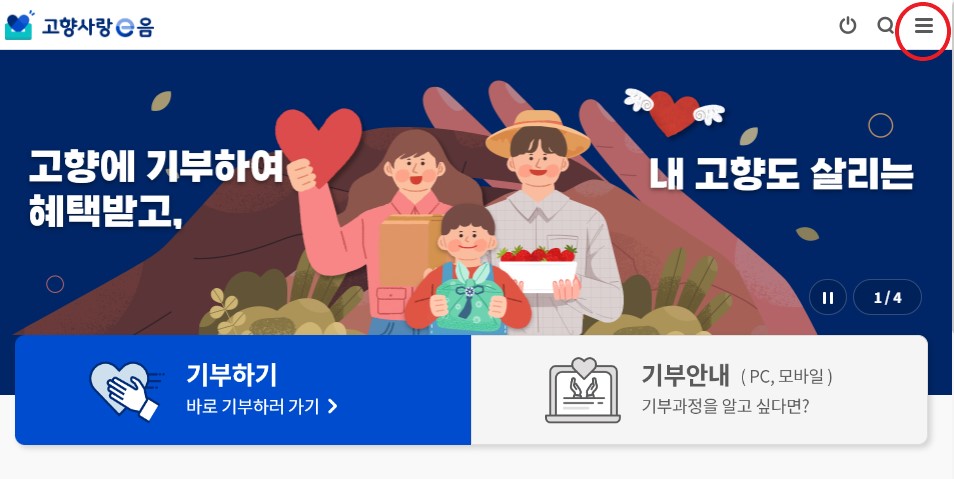 ① 고향사랑e음 사이트에 접속해서 회원가입을 하세요.
