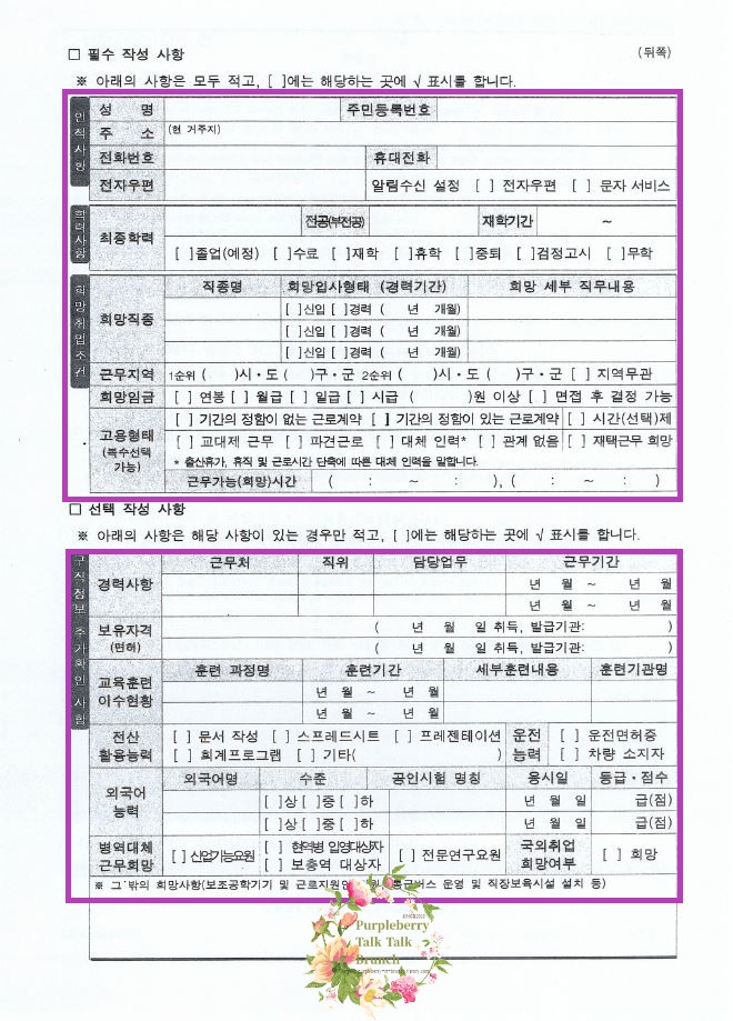 개인의 인적사항과 취업 알선을 위한 기본 정보들을 적어 구직자임을 확인하는데 사용되는 것입니다.