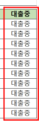 - 우선 대출중이라는 글자가 있는 G4셀에 검은 십자가를 만들고 더블클릭하면 요래 됨